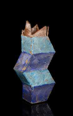 Handcrafted modern vase with combed three color exterior in zigzag form