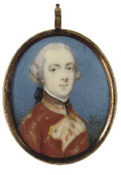 Painting gilt-metal frame with reeded border in fitted fishskin case oval