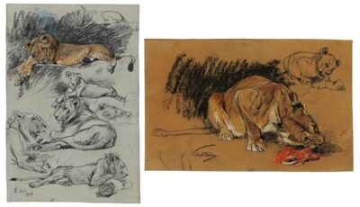 | Studies of a lion and a lioness; Studies of a lioness eating and a lion cub | |