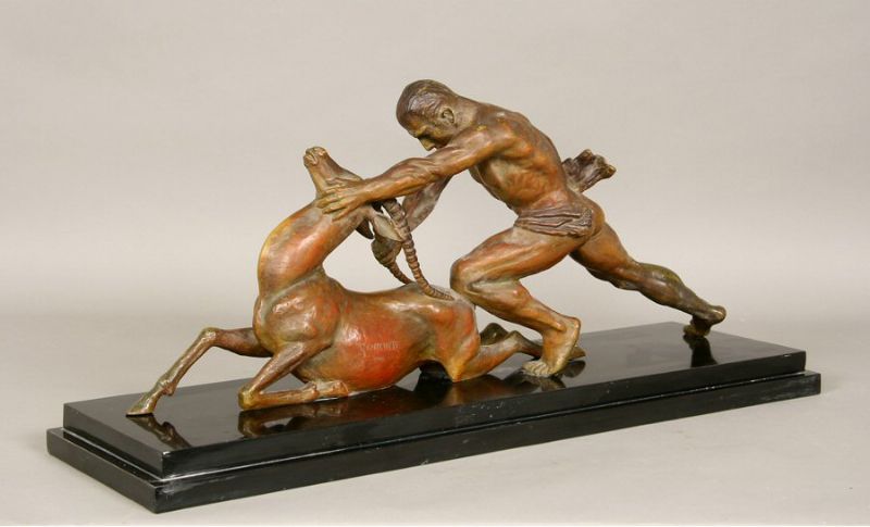 Sculpture Having a pleasing red tone patina resting on a black marble base.