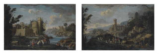 | Paesaggio lacustre con cavalieri nei pressi di un borgo turrito; e Paesaggio lacustre con viandanti | |