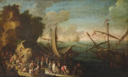 Scène de campement sur le port