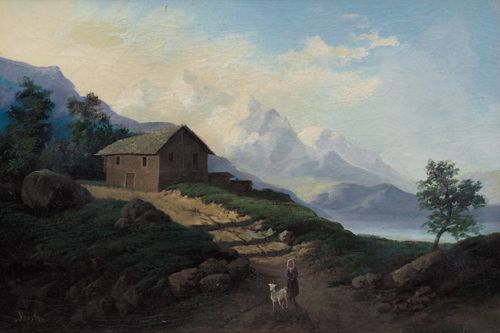 Scorcio del lago con baita e pastorella