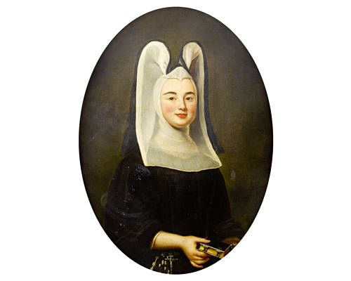 Portrait of a lady, half-length, in clerical robes, holding a prayer-book