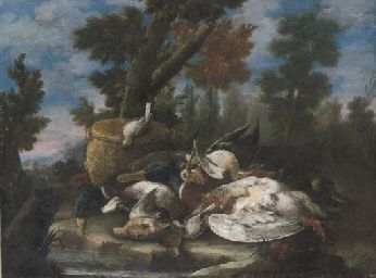 Cacciagione di penna presso un ruscello