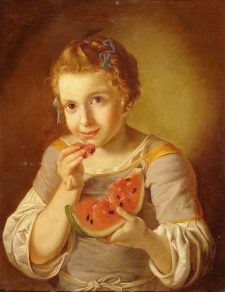 JEUNE FILLE MANGEANT UNE PASTEQUE