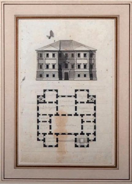 Projet pour une villa, plan et élévation de la façade Pierre noire