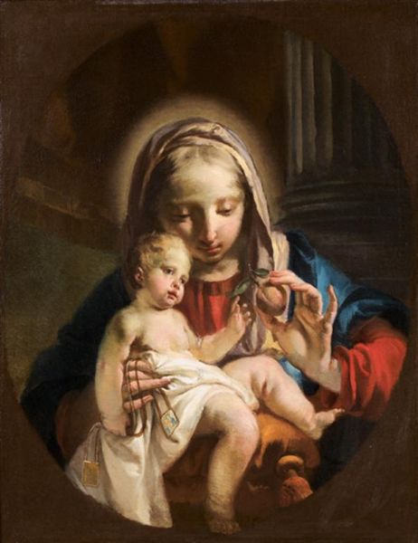 La Vierge à l'Enfant à la grenade dans un ovale peint