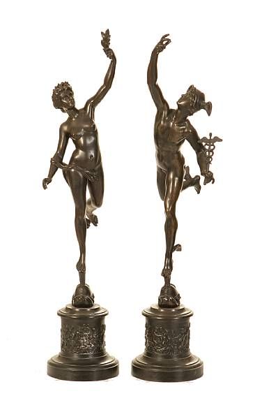 A pair of late 19th century bronze figures of Mercury and Fortuna