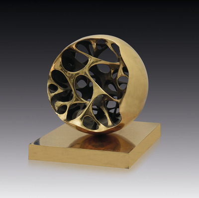 fusione in bronzo a cera persa Ø 40 cm (compresa base 46x40x40 cm), esemplare 1/9, firma e tiratura alla base, dichiarazione d'autenticità dell'artista su certificato allegato. | |