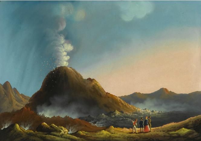 BAY OF NAPLES WITH VESUVIUS ERUPTING BEYOND