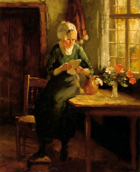 Vrouw lezend bij raam