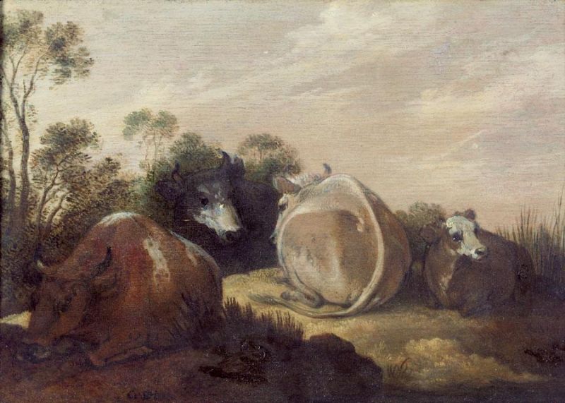 CATTLE RESTING IN A DUNE LANDSCAPE