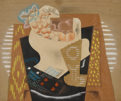 | Collage with corrugated card, gouache, pastel and crayon on paper laid down on board | |