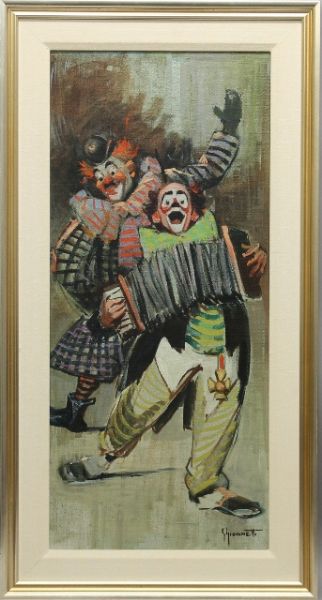 Two Clowns Playing Instruments.