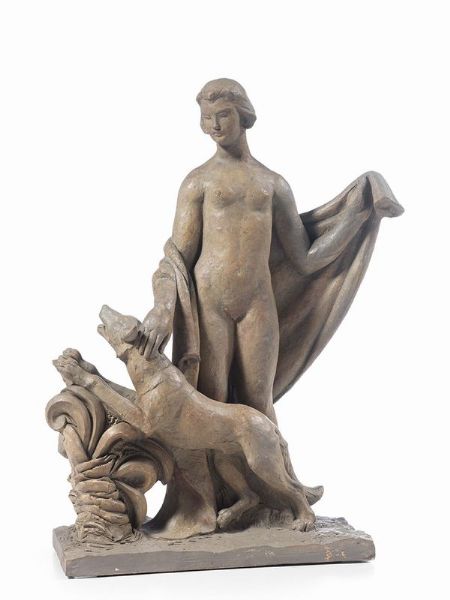 Nudo femminile panneggiato con cane