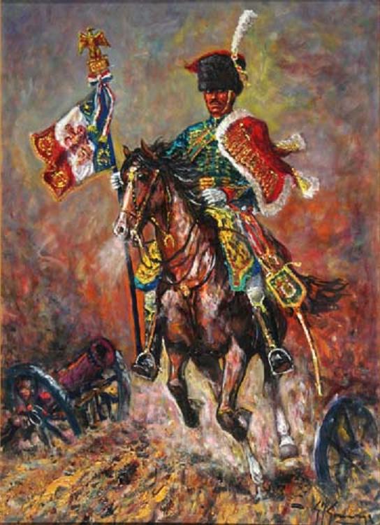 | Il Luogotenente dei cacciatori della guardia porta stendardo a Jena | |