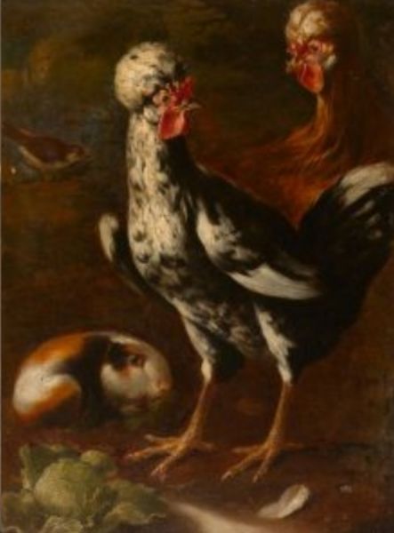 Chickens and guinea pig.