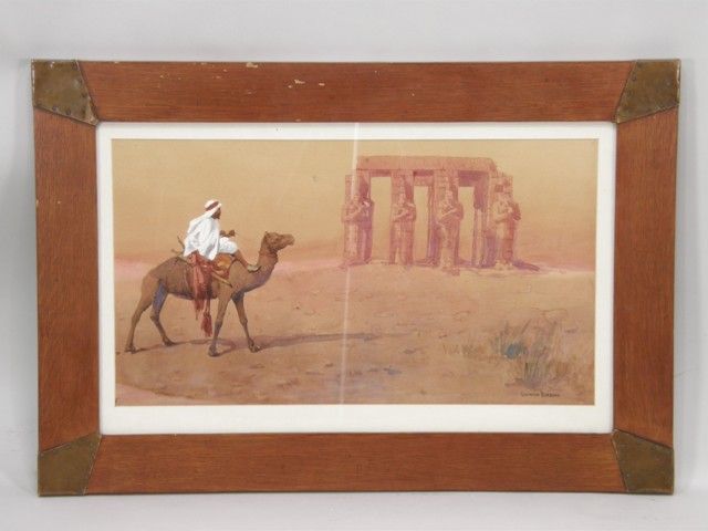 A traveller on a camel passing the ancient Arab Nile ruins