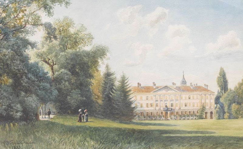 Sommerliche Parkanlage mit Schloss.