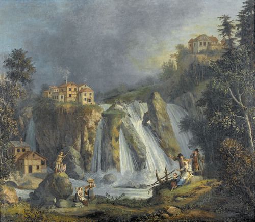 Zwei Landschaften mit Wasserfällen. Gegenstücke