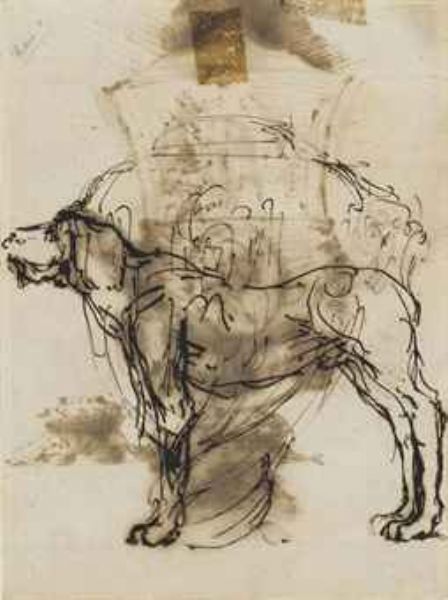 | A dog, seen in profile (recto); Study of a vase (verso); and Studies of horses (recto); Figure studies (verso) | |