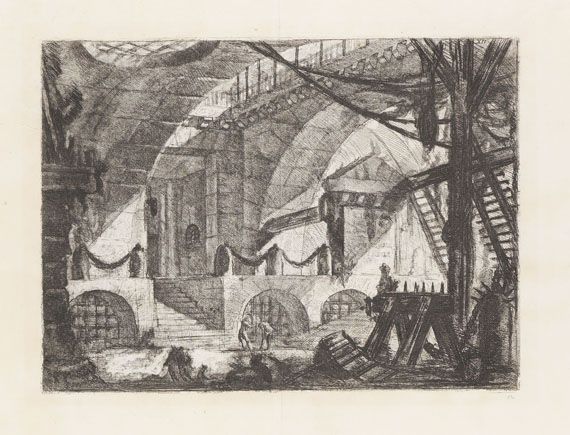 | Blatt XII der sechzehnteiligen Folge der "Carceri d'Invenzione" (The Sawhorse) | |