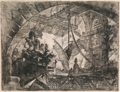 Prisoners on a projecting platform, from “Carceri”