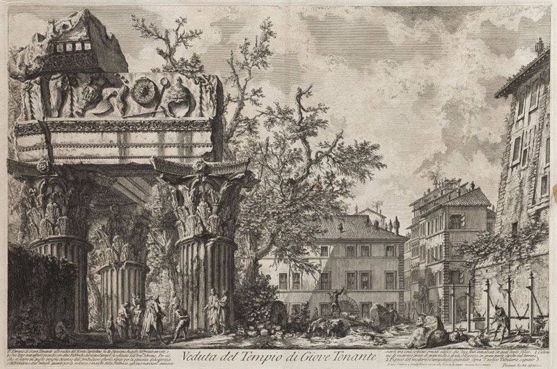 Veduta del Tempio di Giove Tonante o el Templo de Vespasiano.