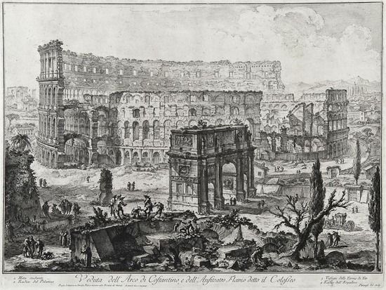 | Veduta dell'Arco di Costantino, e del Anfiteatro Flavio detto il Colosseo | |