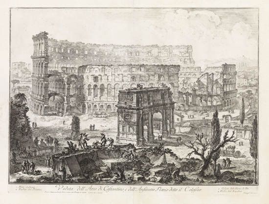 | Veduta dell'Arco di Costantino, e dell' Anfiteatro Flavio detto il Colosseo. | |