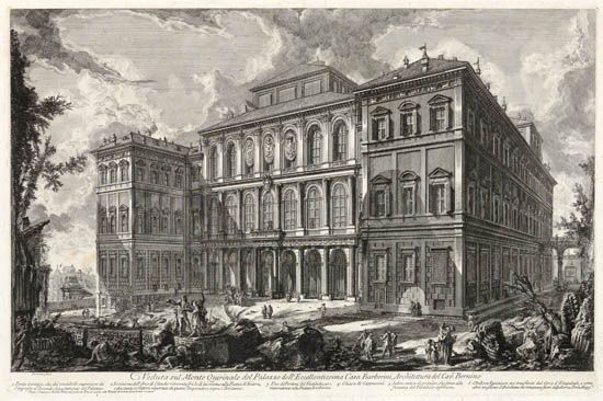 | Veduta sul Monte Quirinale del Palazzo dell'Eccellentissima Casa Barberini. | |
