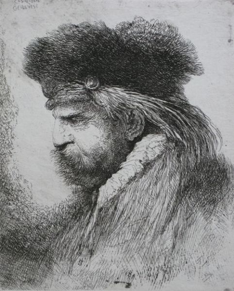 | Man with A Mustache, Wearing A Fur Headdress, Facing Left | |