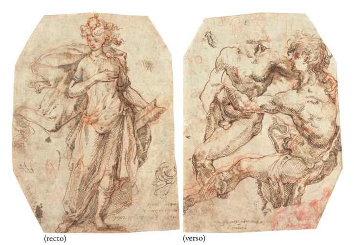 | A youth holding a book (recto);Two embracing male nudes (verso) | |