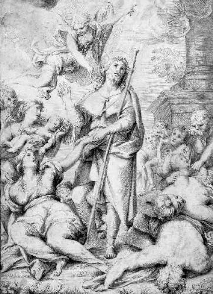 | DER HEILIGE ROCHUS HEILT DIE PESTKRANKEN. | |