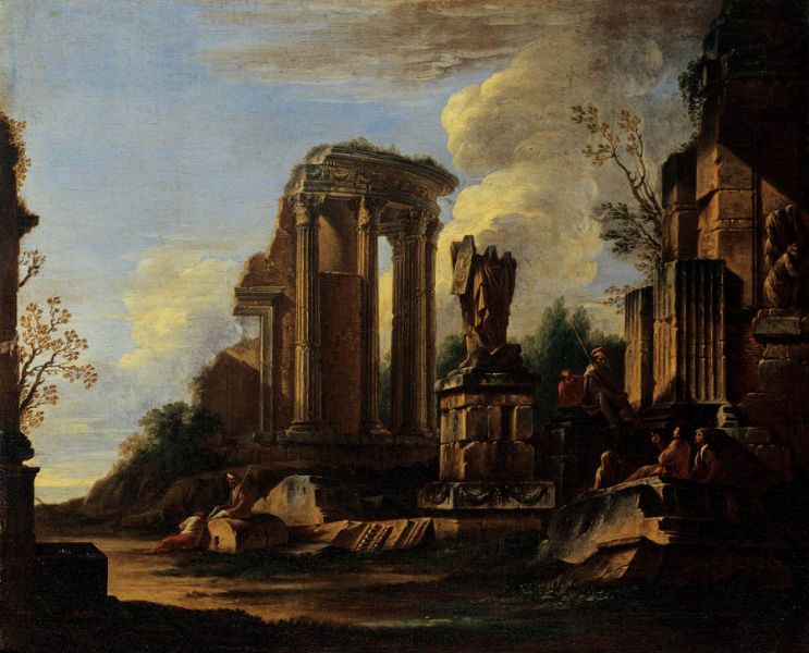Capriccio con il Tempio della Sibilla libica di Tivoli e viandanti