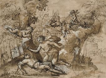 | Chalk pen and brown ink, brown wash, heightened with white | |
