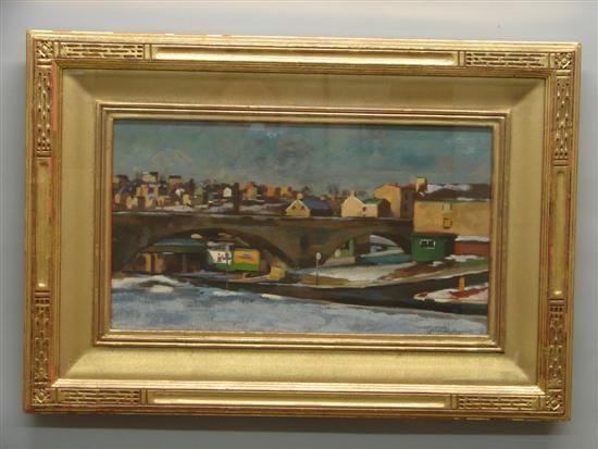| Winter landscape, street scene with arch bridge and urban landscape | |