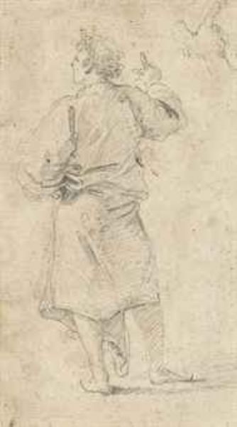 | A gesticulating man, wearing a cloak, seen from behind, with a subsidiary study of his hand | |