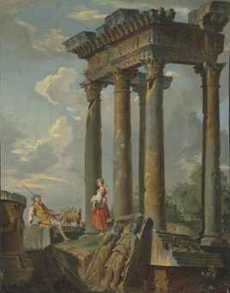 | A capriccio of classical ruins with a shepherd and a shepherdess | |