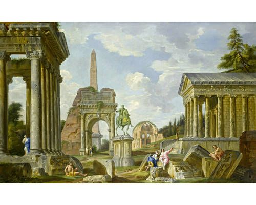 | An architectural capriccio with the Temple of Saturn, the Arch of Titus, the Temple of Minerva Medica and the Temple of Fortuna | |