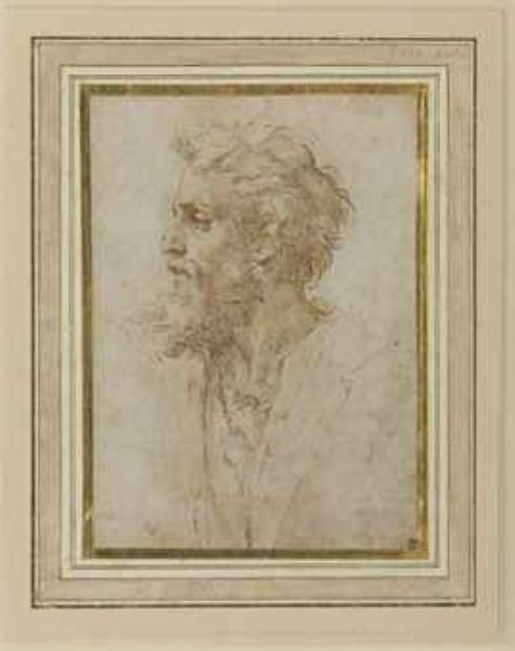 | Head of a bearded man in profile facing left, possibly a self-portrait | |