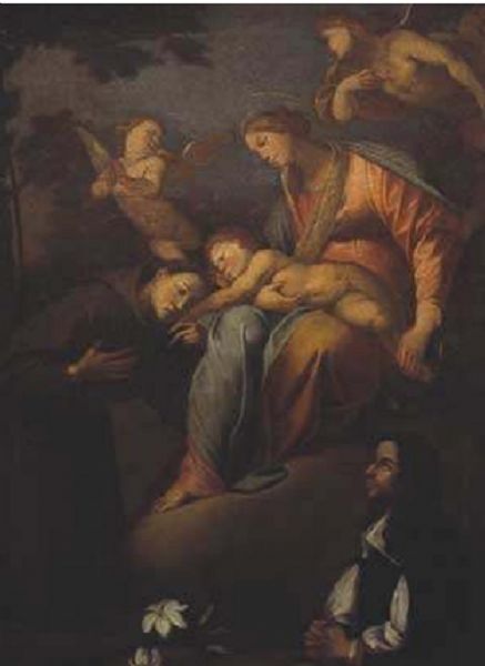 | MADONNA CON BAMBINO, ANGELI, SANT’ANTONIO E COMMITTENTE | |