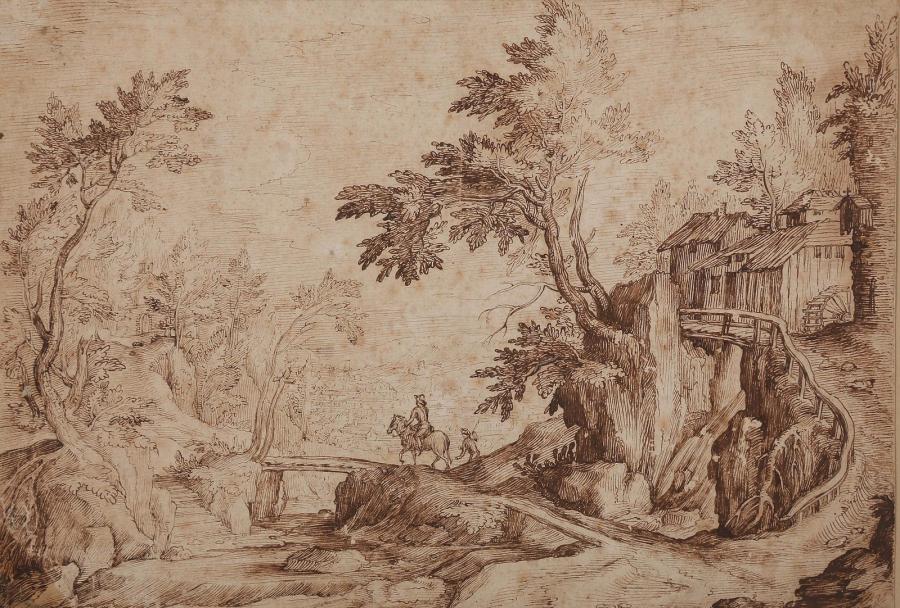 | Landscape, rider on a bridge | |