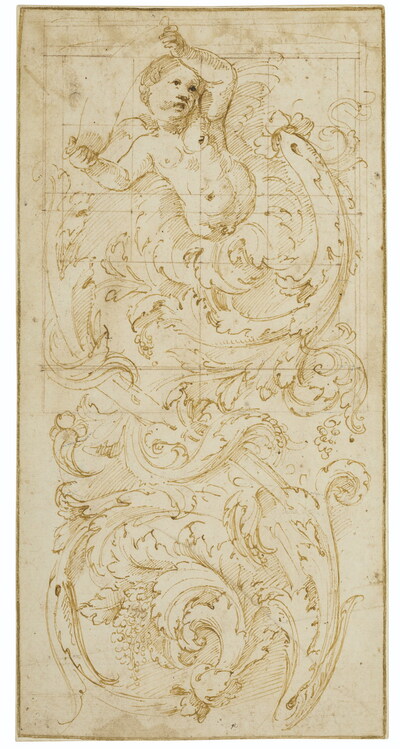 | Design for a frieze with a putto and acanthus leaves | |