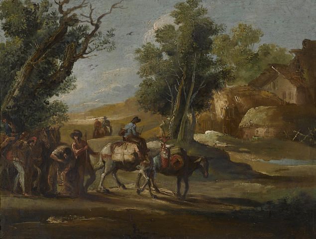 A landscape with travellers; A landscape with soldiers (a pair)