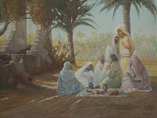 Scena orientale con Cristo e discepoli