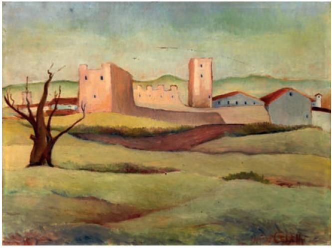 PAESAGGIO CON MURA E CASE