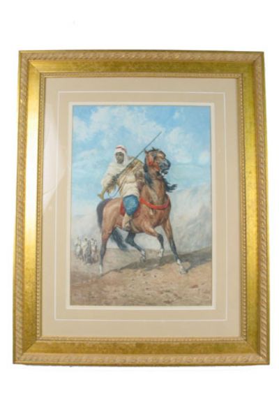 Three Arabs pursuing another, all with muskets