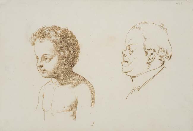 | Studies of a Young Boy and a Man in Profile to the Left. | |